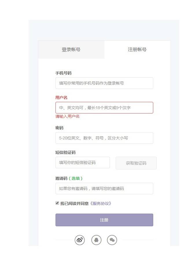 2、进入注册页面,输入注册邮箱(手机)、昵称、密码等信息,点击【注册】;或者使用新浪微博、QQ、微信等第三方账号快捷登录,无需再注册信息,点击图标即可;